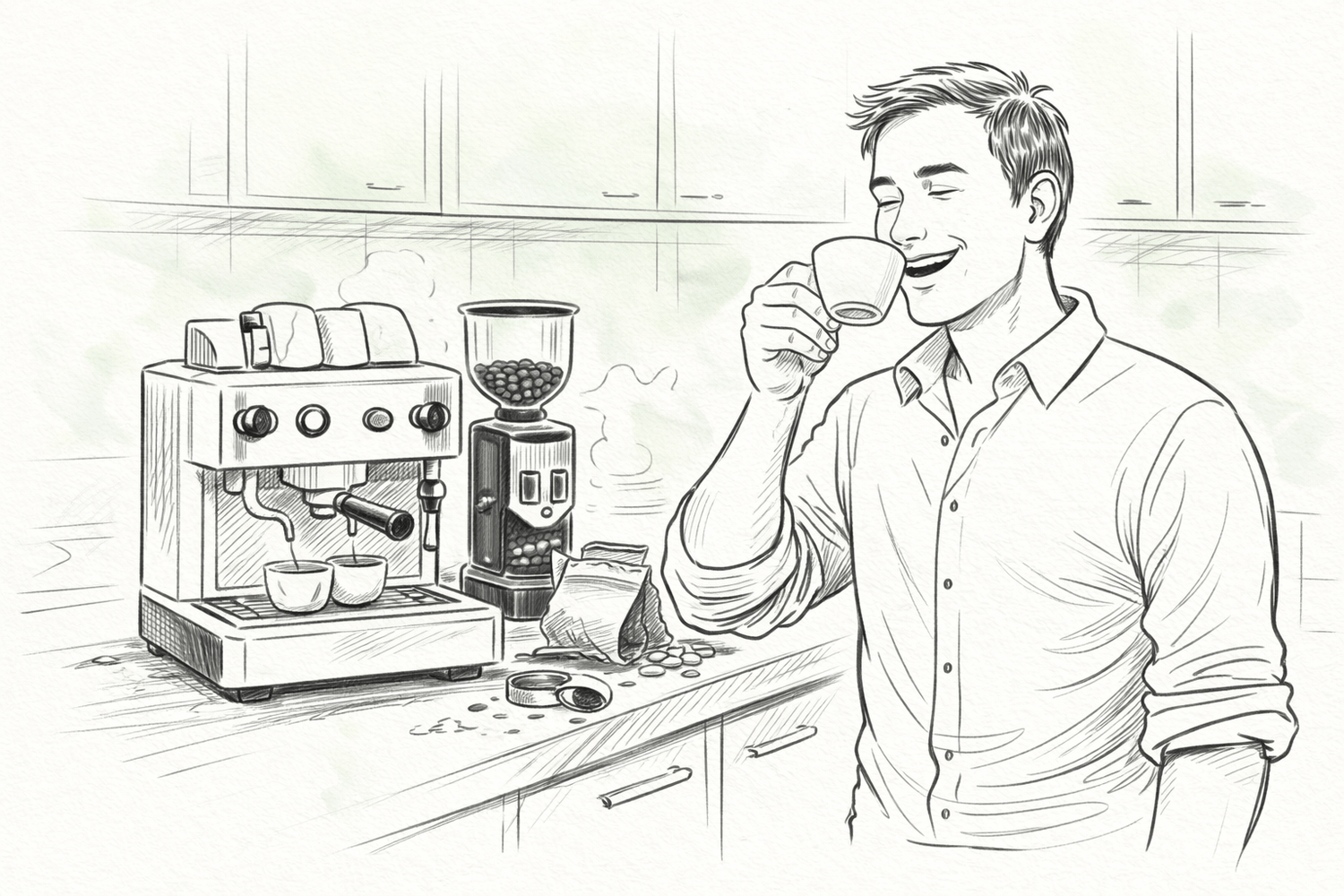 wollte Espresso wie in Italien und scheiterte an Bohnen und Zubereitung. Nach dem Heimspiel Training am eigenen Gerät klappt es nun jeden Tag zuverlässig.