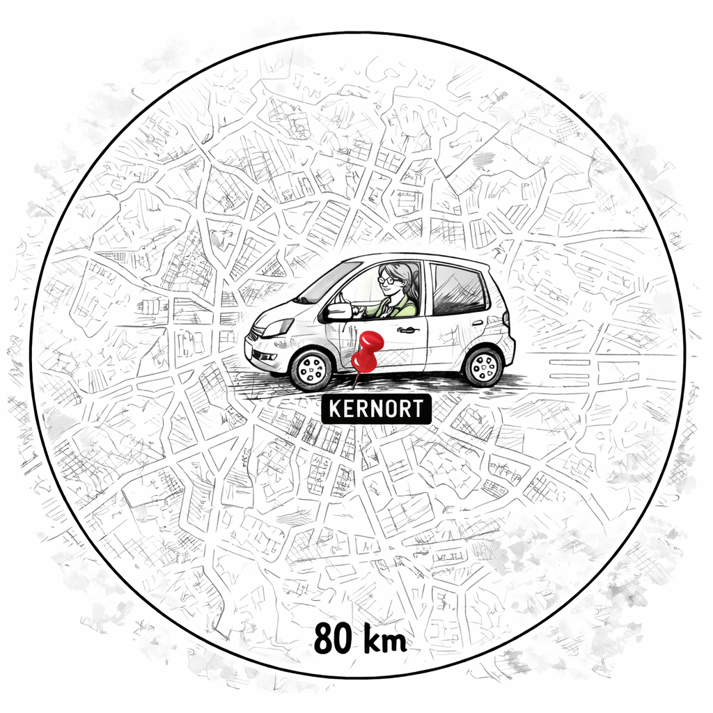 Bis zu 80 km Umkreis um diesen Kernort komme ich zu dir nach Hause.